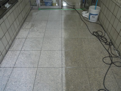 階段などの剥離作業は機械が使えません。手作業でがんばります。